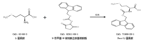 2.通過L-蛋氨酸和9-芴甲基-N-琥珀酰亞胺基碳酸酯合成Fmoc-L-蛋氨酸,收率約61%;