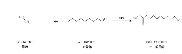 1.通過(guò)甲醇和1-癸烯合成十一酸甲酯,收率約94%;