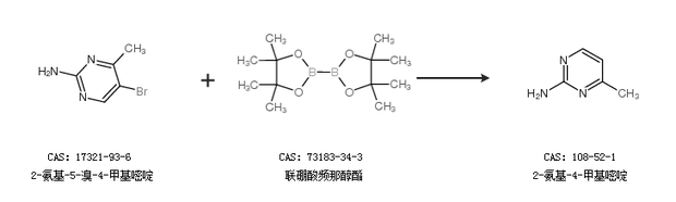 1.通過(guò)2-氨基-5-溴-4-甲基嘧啶和聯(lián)硼酸頻那醇酯合成2-氨基-4-甲基嘧啶