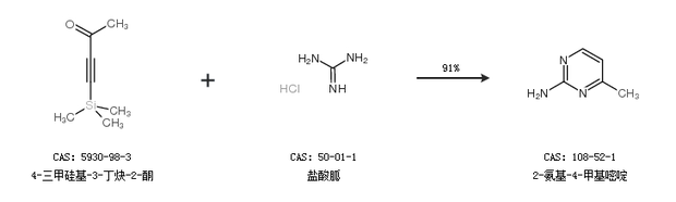 2.通過(guò)4-三甲硅基-3-丁炔-2-酮和鹽酸胍合成2-氨基-4-甲基嘧啶,收率約91%;
