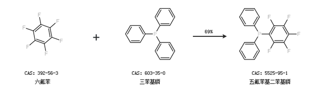 1.通過(guò)六氟苯和三苯基膦合成五氟苯基二苯基膦,收率約69%;