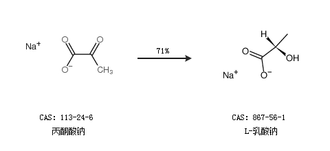 1.通過丙酮酸鈉合成L-乳酸鈉,收率約71%;
