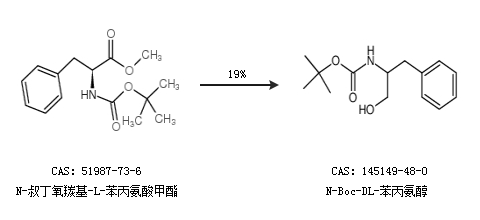 1.通過N-叔丁氧羰基-L-苯丙氨酸甲酯合成N-Boc-DL-苯丙氨醇,收率約19%;