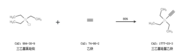 1.通過三乙基氯硅烷和乙炔合成三乙基硅基乙炔,收率約80%;
