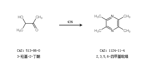 2.通過(guò)3-羥基-2-丁酮合成2,3,5,6-四甲基吡嗪,收率約43%;