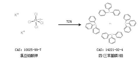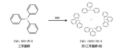 1.通過(guò)三苯基膦合成四(三苯基膦)鉑,收率約98%;
