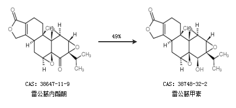 1.通過(guò)雷公藤內(nèi)酯酮合成雷公藤甲素,收率約31%;