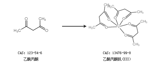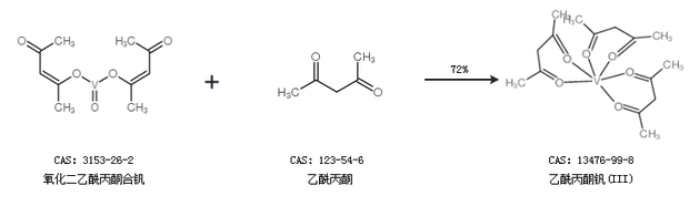 1.通過(guò)氧化二乙酰丙酮合釩和乙酰丙酮合成乙酰丙酮釩(III),收率約72%;
