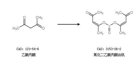 中文別名 乙酰丙酮釩;乙酰丙酮氧釩;雙(乙酰丙酮)氧化釩(IV);雙(2,4-戊二酮酸)合氧化釩(IV);雙(2,4-戊二酮酸);