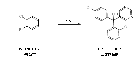 1.通過2-溴氯苯合成氯苯嘧啶醇,收率約19%;