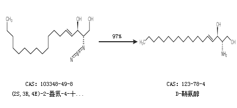 1.通過(2S,3R,4E)-2-疊氮-4-十八碳烯-1,3-二醇合成D-鞘氨醇,收率約97%;