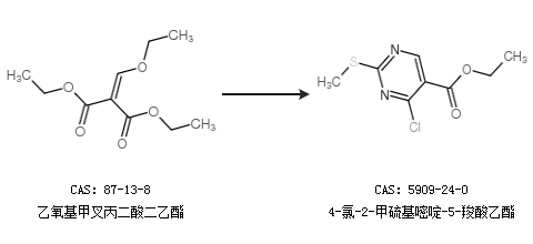 2.通過(guò)乙氧基甲叉丙二酸二乙酯合成4-氯-2-甲硫基嘧啶-5-羧酸乙酯