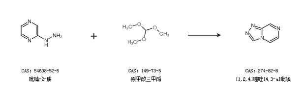 1.通過吡嗪-2-肼和原甲酸三甲酯合成[1,2,4]噻唑[4,3-a]吡嗪