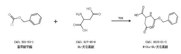 1.通過氯甲酸芐酯和DL-天冬氨酸合成N-Cbz-DL-天冬氨酸,收率約70%;