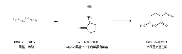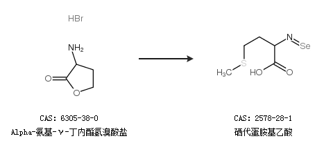 1.通過(guò)二甲基二硒醚和Alpha-氨基-γ-丁內(nèi)酯氫溴酸鹽合成硒代蛋胺基乙酸