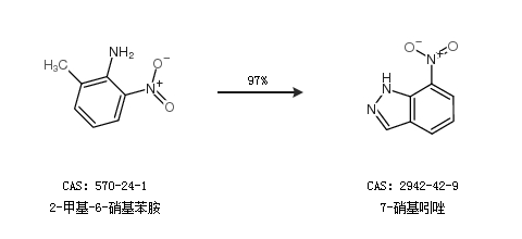 1.通過2-甲基-6-硝基苯胺合成7-硝基吲唑,收率約97%;