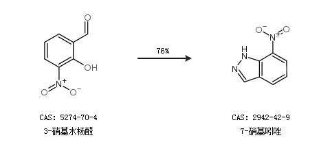 2.通過3-硝基水楊醛合成7-硝基吲唑,收率約76%;