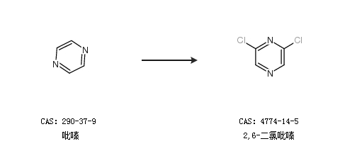 1.通過N,N-二氧化吡嗪合成2,6-二氯吡嗪,收率約84%;