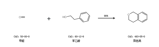 1.通過甲醛和苯乙醇合成異色滿,收率約98%;