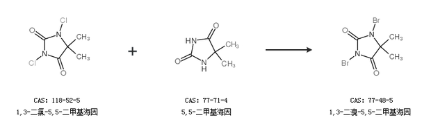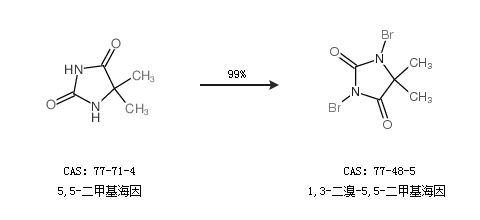 1.通過5,5-二甲基海因合成1,3-二溴-5,5-二甲基海因,收率約99%;