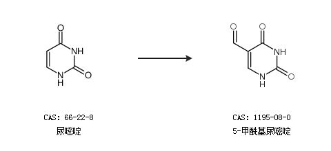 中文名稱(chēng) 5-甲?;蜞奏?br>中文別名 尿嘧啶-5-甲醛;5-甲?;遴奏?2,4-二氧代-1,2,3,4-四氫嘧啶-5-甲醛;