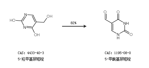 1.通過(guò)5-羥甲基尿嘧啶合成5-甲?;蜞奏?,收率約82%;