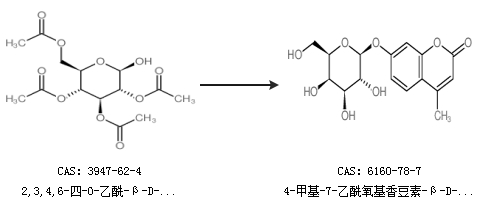 2.通過(guò)2,3,4,6-四-O-乙酰-β-D-吡喃葡萄糖合成4-甲基-7-乙酰氧基香豆素-β-D-吡喃半乳糖苷