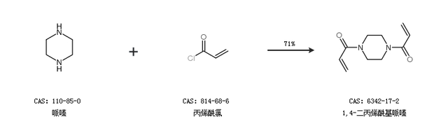 1.通過哌嗪和丙烯酰氯合成1,4-二丙烯?;哙海章始s71%;