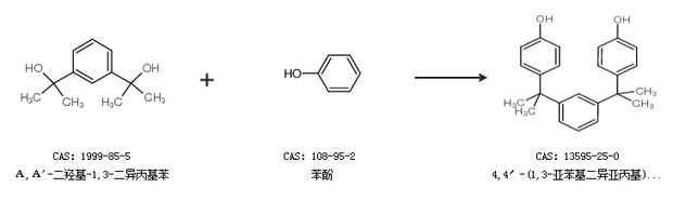 1.通過Α,Α''-二羥基-1,3-二異丙基苯和苯酚合成4,4′-(1,3-亞苯基二異亞丙基)二苯酚