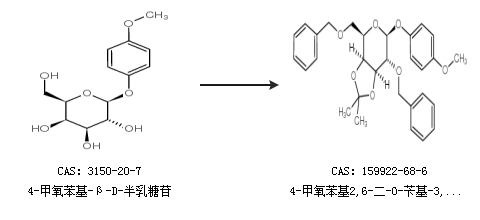 2.通過(guò)4-甲氧苯基-β-D-半乳糖苷合成4-甲氧苯基2,6-二-O-芐基-3,4-O-異亞丙基-β-D-吡喃半乳糖苷