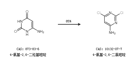 1.通過4-氨基-2,6-二羥基嘧啶合成4-氨基-2,6-二氯嘧啶,收率約85%;