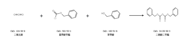 1.通過(guò)氯甲酸芐酯合成二碳酸二芐酯,收率約82%;