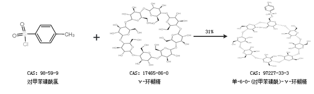 2.通過對(duì)甲苯磺酰氯和γ-環(huán)糊精合成單-6-O-(對(duì)甲苯磺酰)-γ-環(huán)糊精,收率約31%;