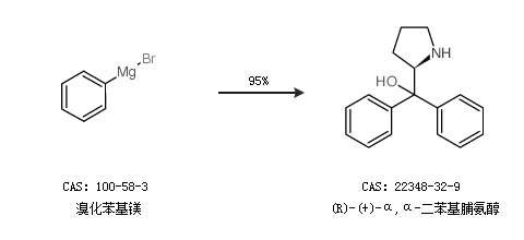 2.通過溴化苯基鎂合成(R)-(+)-α,α-二苯基脯氨醇,收率約95%;