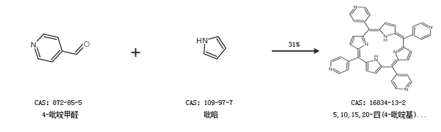 1.通過(guò)4-吡啶甲醛和吡咯合成5,10,15,20-四(4-吡啶基)卟啉,收率約31%;