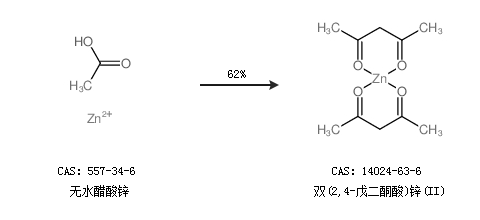 2.通過無水醋酸鋅合成雙(2,4-戊二酮酸)鋅(II),收率約62%;