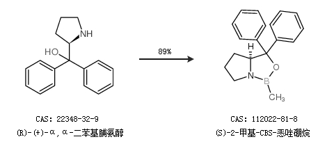 2.通過(R)-(+)-α,α-二苯基脯氨醇合成(S)-2-甲基-CBS-惡唑硼烷,收率約89%;