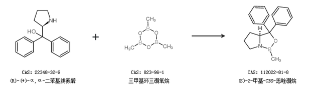 1.通過(R)-(+)-α,α-二苯基脯氨醇和三甲基環(huán)三硼氧烷合成(S)-2-甲基-CBS-惡唑硼烷