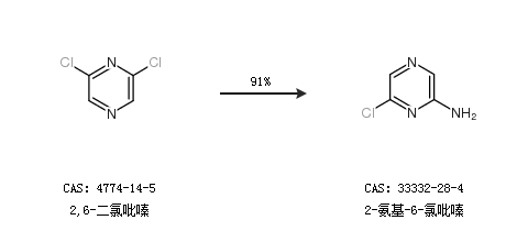 1.通過2,6-二氯吡嗪合成2-氨基-6-氯吡嗪,收率約91%;