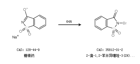2.通過糖精鈉合成2-溴-1,2-苯并異噻唑-3(2H)-酮 1,1-二氧化物,收率約64%;