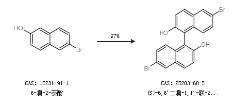 2.通過(guò)6-溴-2-萘酚合成(S)-6,6''二溴-1,1''-聯(lián)-2-萘酚,收率約97%;