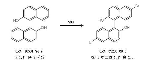 1.通過(guò)R-1,1''-聯(lián)-2-萘酚合成(S)-6,6''二溴-1,1''-聯(lián)-2-萘酚,收率約99%;