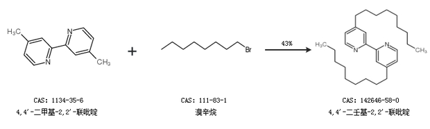1.通過(guò)4,4''-二甲基-2,2''-聯(lián)吡啶和溴辛烷合成4,4''-二壬基-2,2''-聯(lián)吡啶,收率約43%;