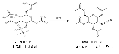 1.通過甘露糖三氟磺酸酯合成1,3,4,6-四-O-乙?;?2-疊氮-2-脫氧-Β-D-吡喃葡萄糖,收率約85%;