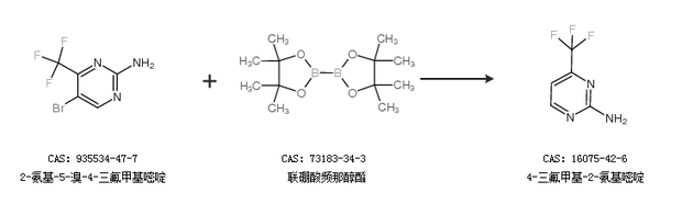 1.通過2-氨基-5-溴-4-三氟甲基嘧啶和聯(lián)硼酸頻那醇酯合成4-三氟甲基-2-氨基嘧啶
