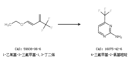 2.通過1-乙氧基-3-三氟甲基-1,3-丁二烯合成4-三氟甲基-2-氨基嘧啶