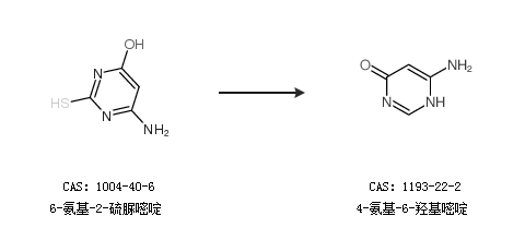 1.通過6-氨基-2-硫脲嘧啶合成4-氨基-6-羥基嘧啶
