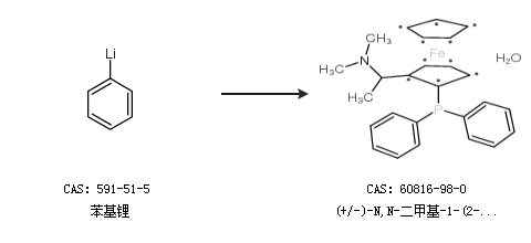 1.通過苯基鋰合成(+/-)-N,N-二甲基-1-(2-二苯基膦)二茂鐵乙胺單水合物