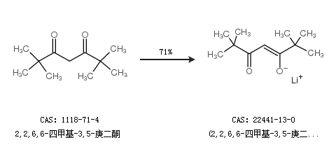 1.通過2,2,6,6-四甲基-3,5-庚二酮合成(2,2,6,6-四甲基-3,5-庚二酮)鋰,收率約71%;