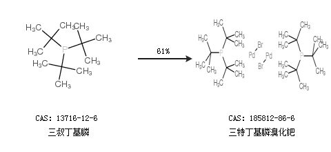 2.通過(guò)三叔丁基膦合成三特丁基膦溴化鈀,收率約61%;